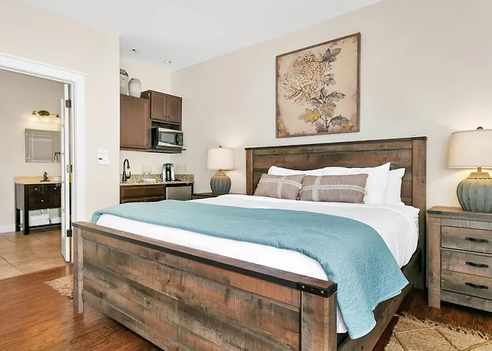 Nestled in the heart of Fredericksburg, the Main Street Retreat #2 - King Bed, On Main St, Shared Hot Tub & Pool invites you to indulge in a blend of modern comfort and charm. This amenity-rich apartment is perfect for travelers seeking a peaceful getaway while being surrounded by local attractions. Just steps away from vibrant shops and delectable dining options, this retreat ensures that you experience the best of the city. Perfectly positioned near the town's key attractions and historical sites, the retreat makes it easy to immerse yourself in the local culture. With various transportation options available, you can effortlessly explore Fredericksburg and its enchanting surroundings.